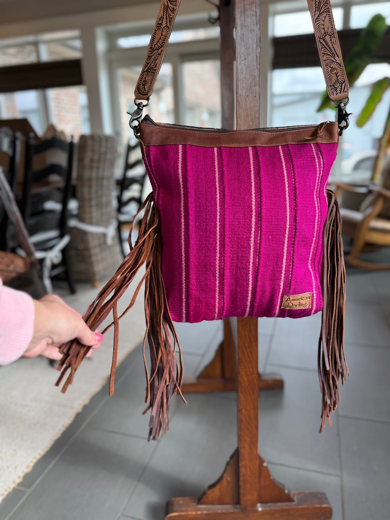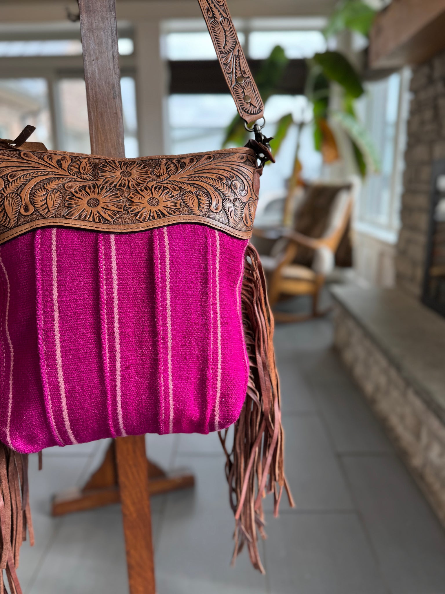 Pink Saddle Blanket Fringe Crossbody Bag